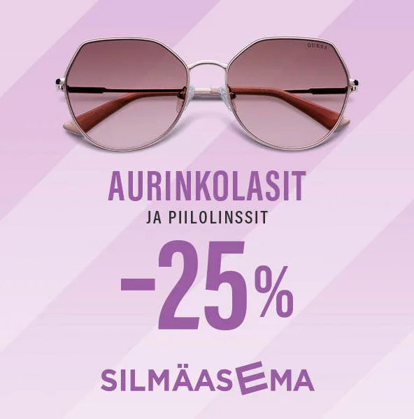 Silmäasemalta saat kaikki palvelut ja tuotteet näkemiseen ja silmien terveyteen: silmälasit, piilolinssit, aurinko­lasit, silmien hoitotuotteet, tarvikkeet sekä optikon ja silmälääkärin vastaanotot ja silmätutkimukset. Lisäksi käytössäsi on kattava silmäsairaalaverkostomme, kun haluat päästä kokonaan eroon silmälaseista tai kaihista. Meiltä saat Bonusta S-Etukor­tilla. Tervetuloa näkemisen asiantuntijalle!