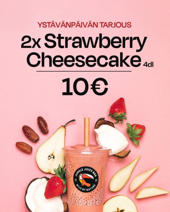 Jungle Juice Bar -smoothie on yhtä kuin helppo ja ravitseva ateria, jonka nautit näppärästi vaikkapa on-the-go. Meillä juoma surautetaan tilauksestasi, tosi-kiireessä valikoi valmis vitriinistä!