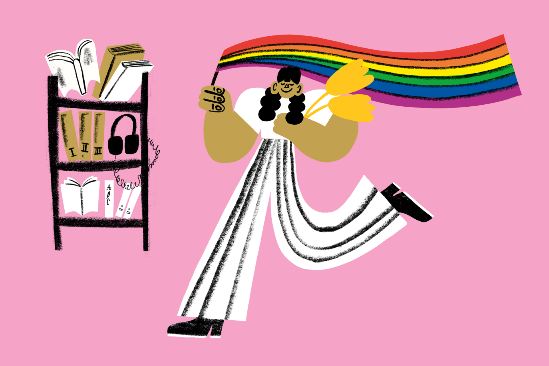 Sateenkaarihyllyn pop up -pisteeltä saat parhaat vinkit LGBTQIA+ kirjallisuudesta, ja voit lainata luettavaa mukaan kotiin.