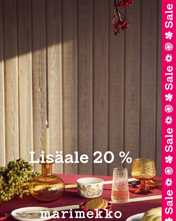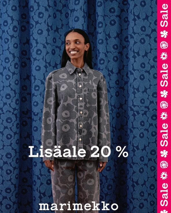 Viimeisiä viedään! Nyt 20 %:n lisäalennus kaikista aletuotteista. Kiiruhda aleostoksille – myymälät ja marimekko.com.