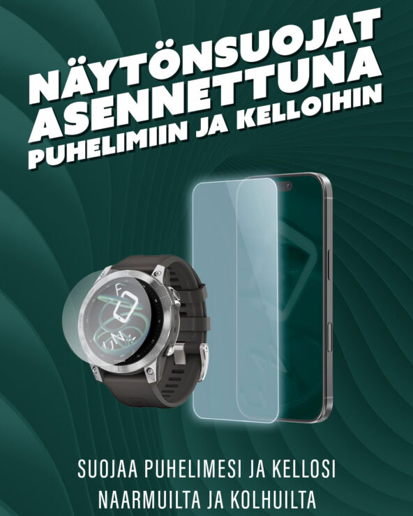 Suojaa puhelimesi ja kellosi naarmuilta ja kolhuilta. Meiltä näytönsuojat jopa 10 000 eri puhelin- ja kellomallille.