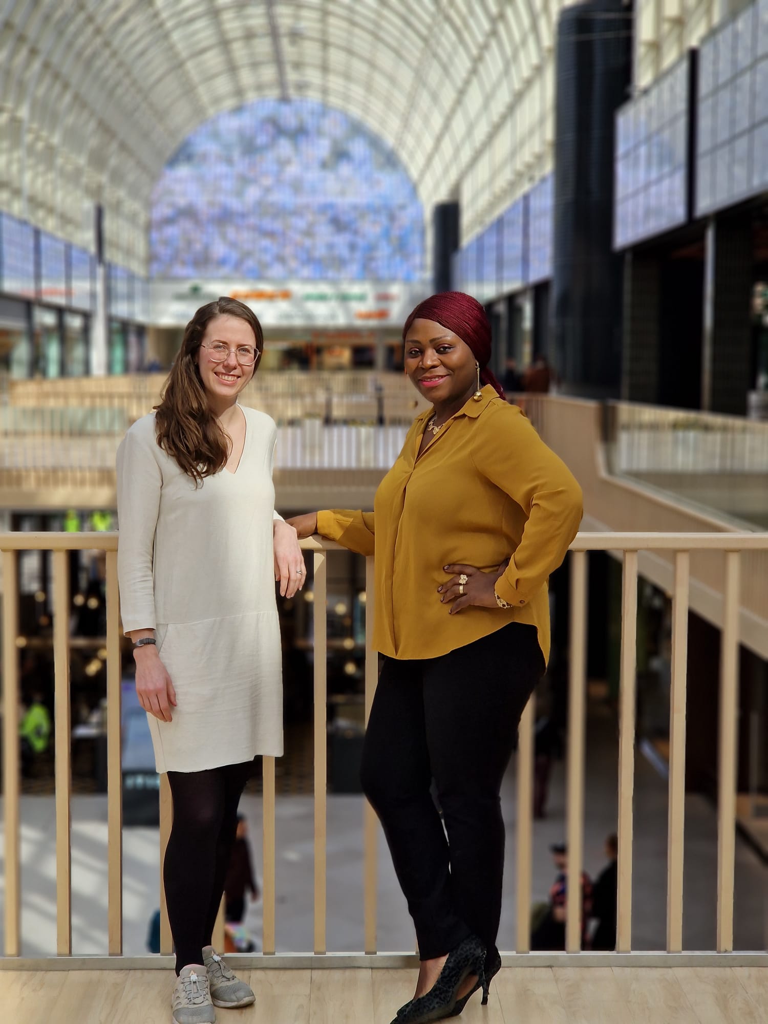 HEED Finland on avannut upouudet toimistotilat meillä Itiksessä! HEED Finland sijaitsee Bulevardin toimistorakennuksessa 4. kerroksessa. Käynti kauppakeskuksen 1. kerroksesta Gigantin viereisellä hissillä. Kuvassa HEED Finlandin Terveys on rikkautta -hankkeen projektipäällikkö Aino Jones (vas.) sekä perustajajäsen, projektiasiantuntija ja sairaanhoitaja Emma Tamankag (oik.).